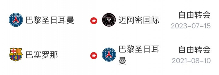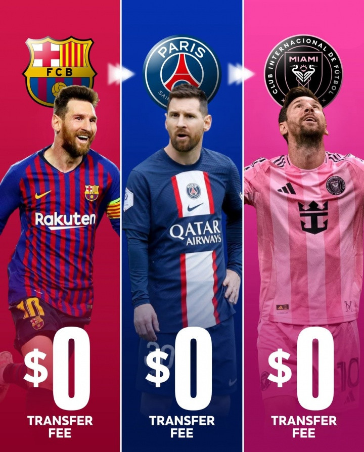 梅西职业生涯先后效力巴萨、巴黎以及迈阿密国际三家俱乐部,两次转会梅西均是自由身离队,无转会费。在梅西的德转页面中,他的生涯历史转会费总额赫然显示为0。